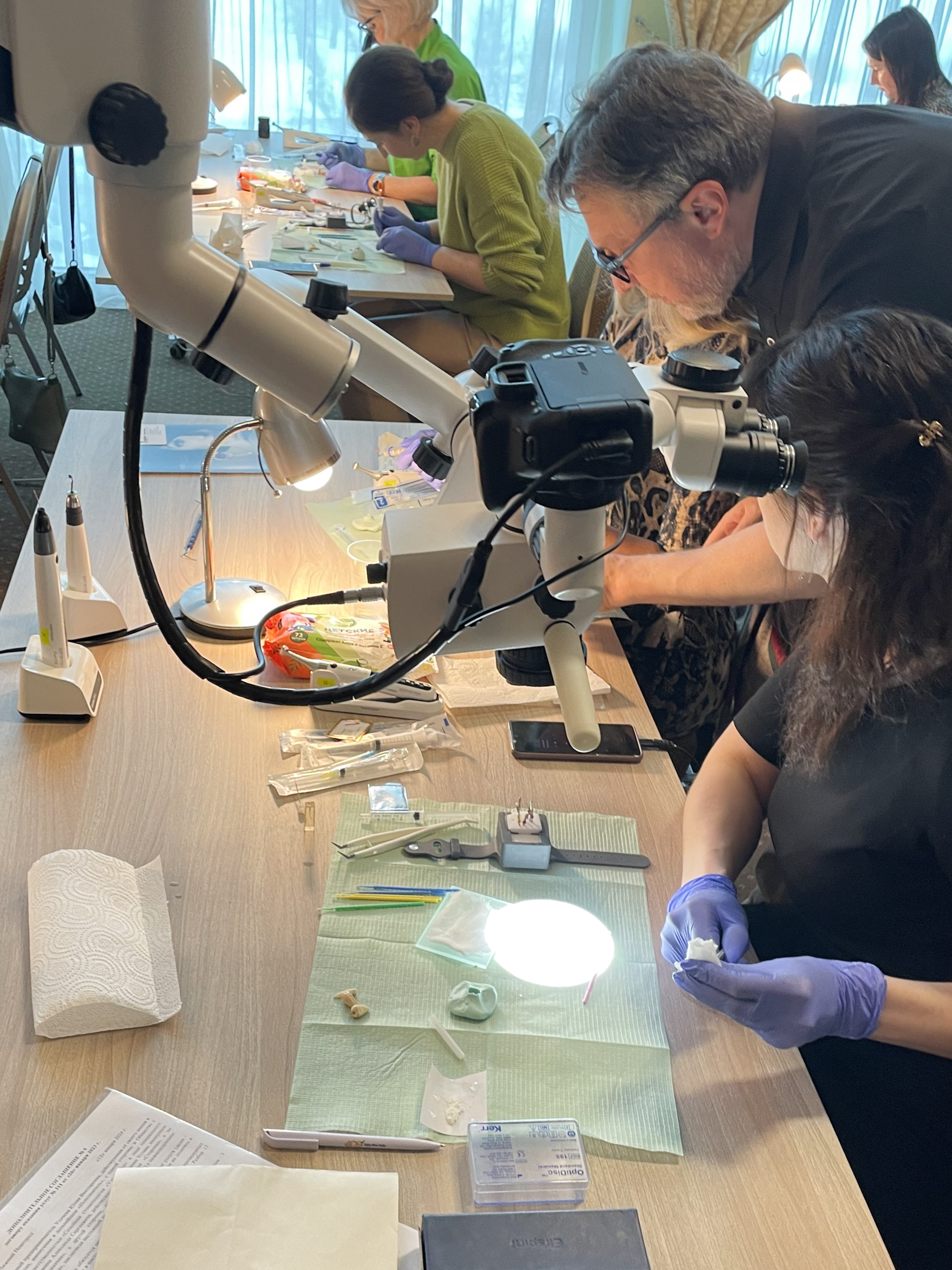Подробнее об этом рассказывал Алексей Болячин на своём курсе «Перелечивание перелечиваний», а его участники отрабатывали полученные навыки на микроскопах компании GREEN DENT.